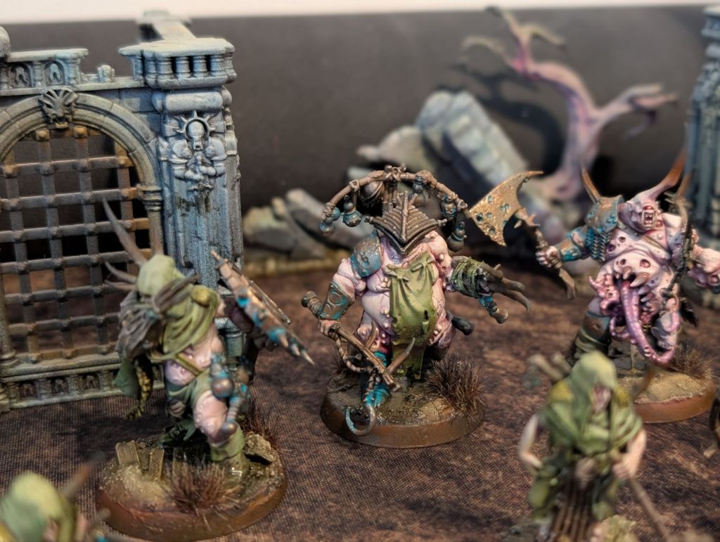 The Rotmire Creed were spectacular. The biggest challenge: to create a whole Mortheim army and mix and match the units with other Nurgle-themed models. Why? Because the the models are defined by organic elements and bamboo, whereas most other Nurgle models use tendrils, corroded Iron and other harsh materials.